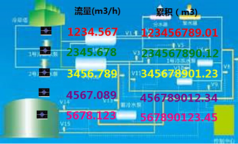 多管道測量現場(chǎng)圖片,特別適合潛水泵流量測量,傳感器既可以采用外敷傳感器也可以采用插入式傳感器,5臺泵流量,累積量數據在同屏顯示抄表查看十分方便;